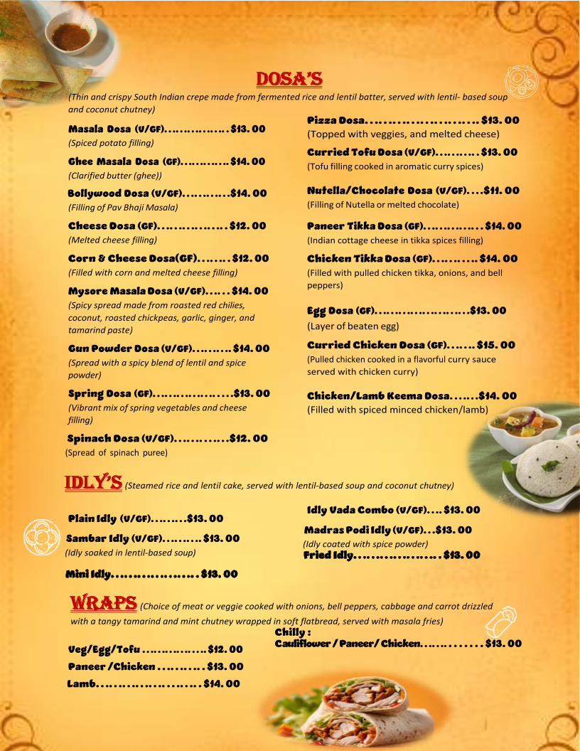 Rich and creamy tomato and butter sauce, infused with aromatic spices. Served with White Rice. Choice of protein: Veg / Tofu / Egg - $14, Paneer / Chicken / Fish - $15, Lamb / Goat / Shrimp - $20